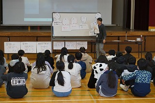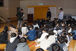 千代田小学校で気持ちよく過ごすためのルールを劇で伝え、ルールに関するクイズを行いました。