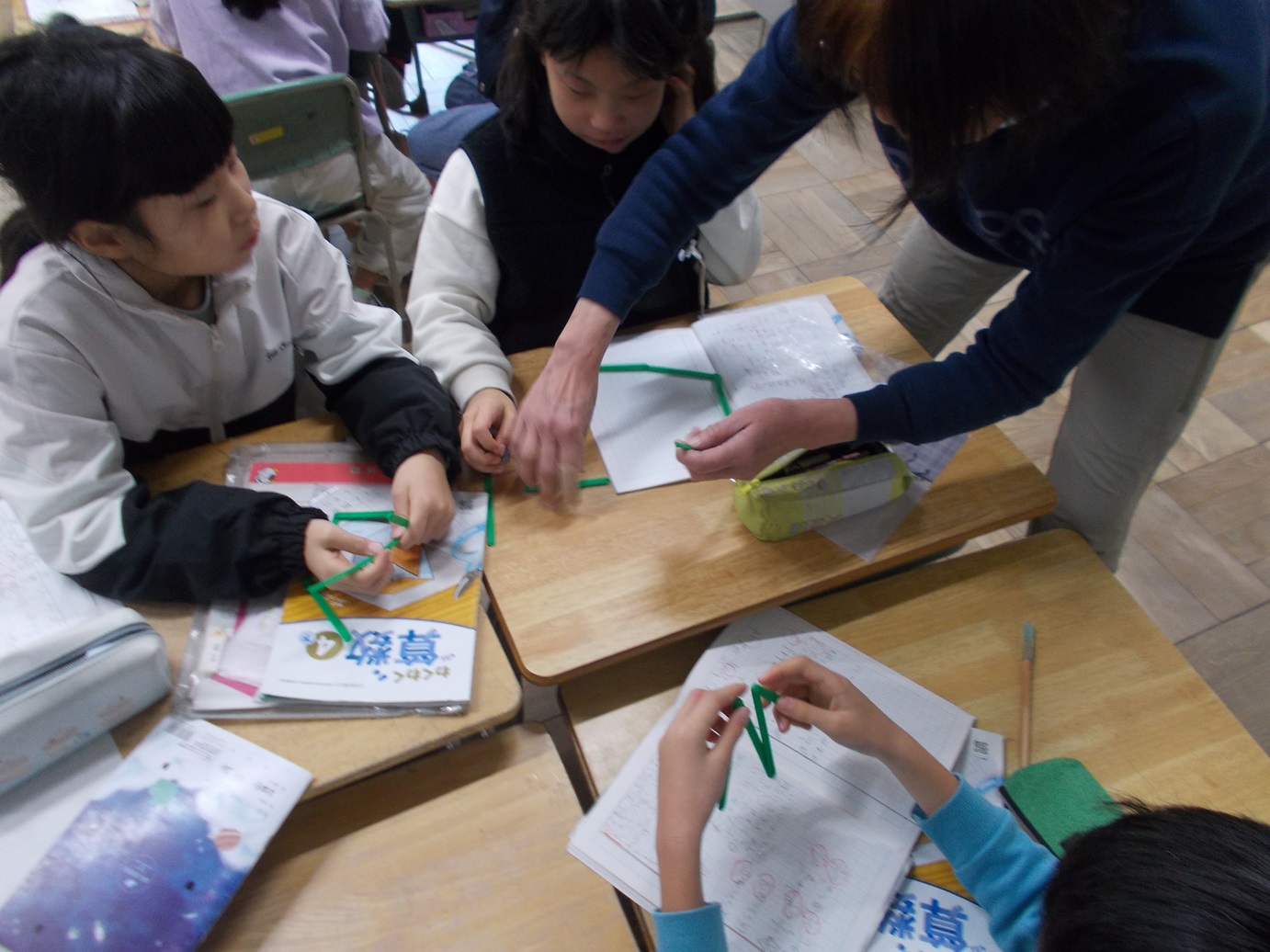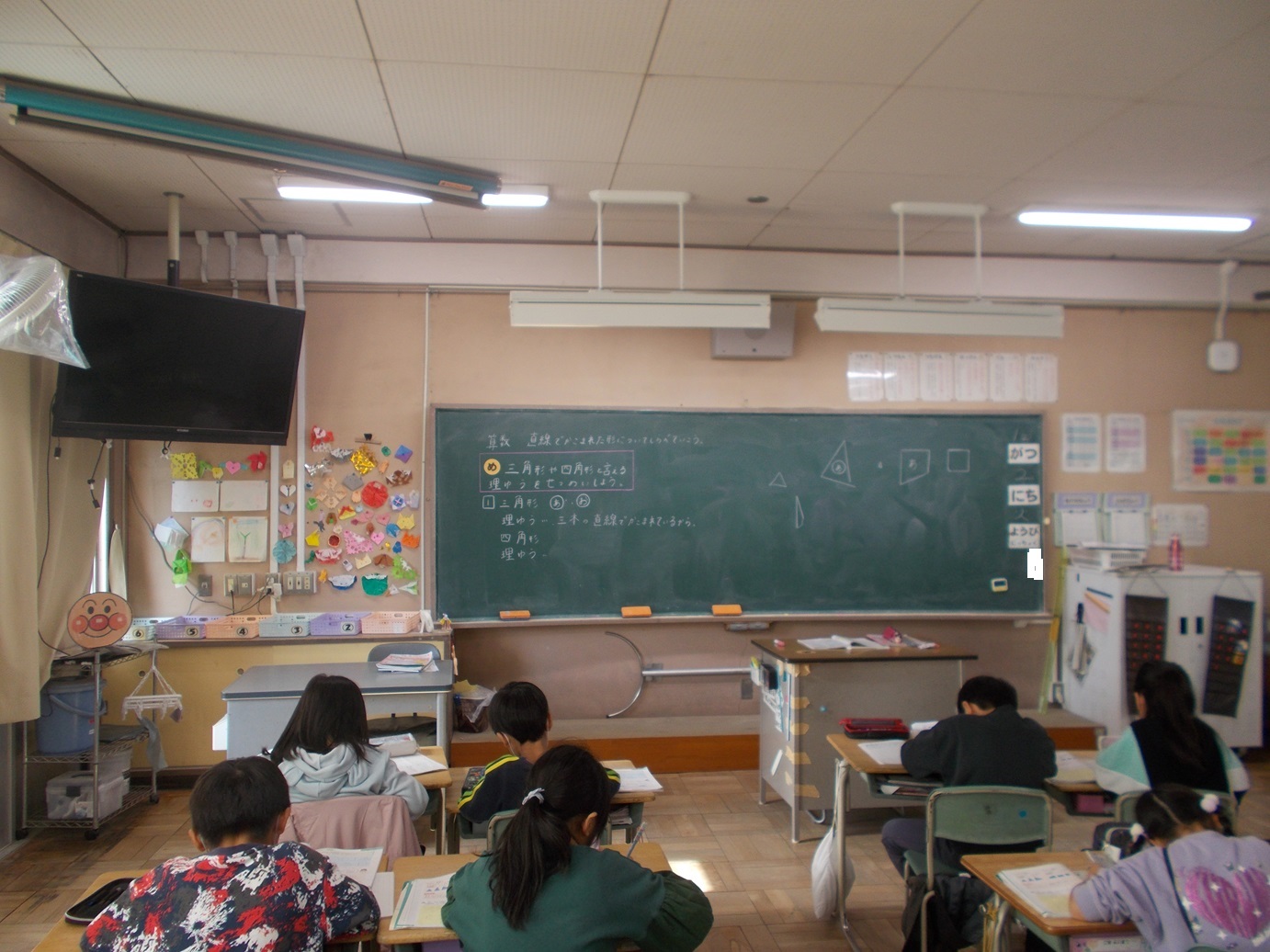 5、6枚目は、2年生の算数科の学習の様子です。「三角形と四角形」について、振り返りを生かしながら、進んで学びに向かっています!