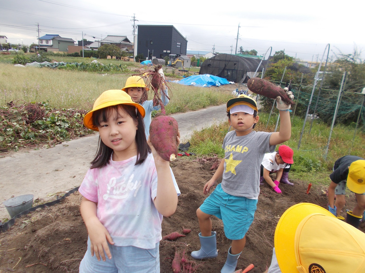春に植えた苗が大きくなり、たくさんの栄養をつめこんで大きな実になることを体験を通して学びました!「とれたよ!」 うれしそうな笑顔が素敵でした!!