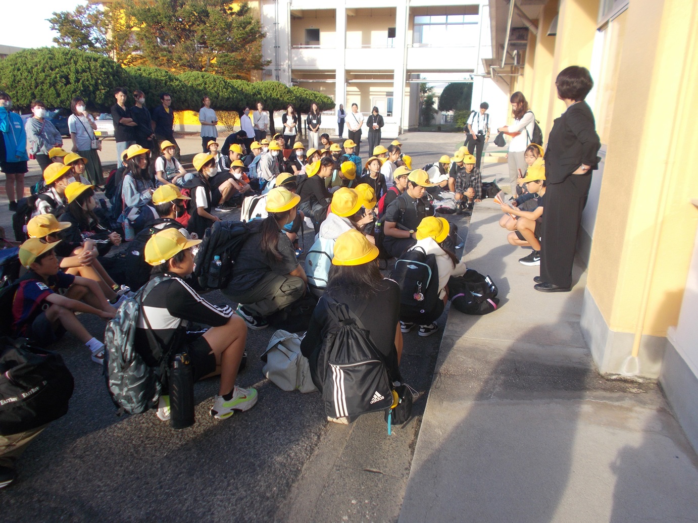 新しい教室からの避難経路を確認して、いつ災害が発生しても対応できるように真剣に取り組みました。