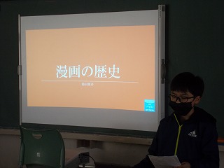 6年生は、総合的な学習の時間で「好きなものの歴史」をテーマに発表しました。資料をもとに自分の考えを発表する姿から、これまでの学びの積み重ねと成長を感じることができました。