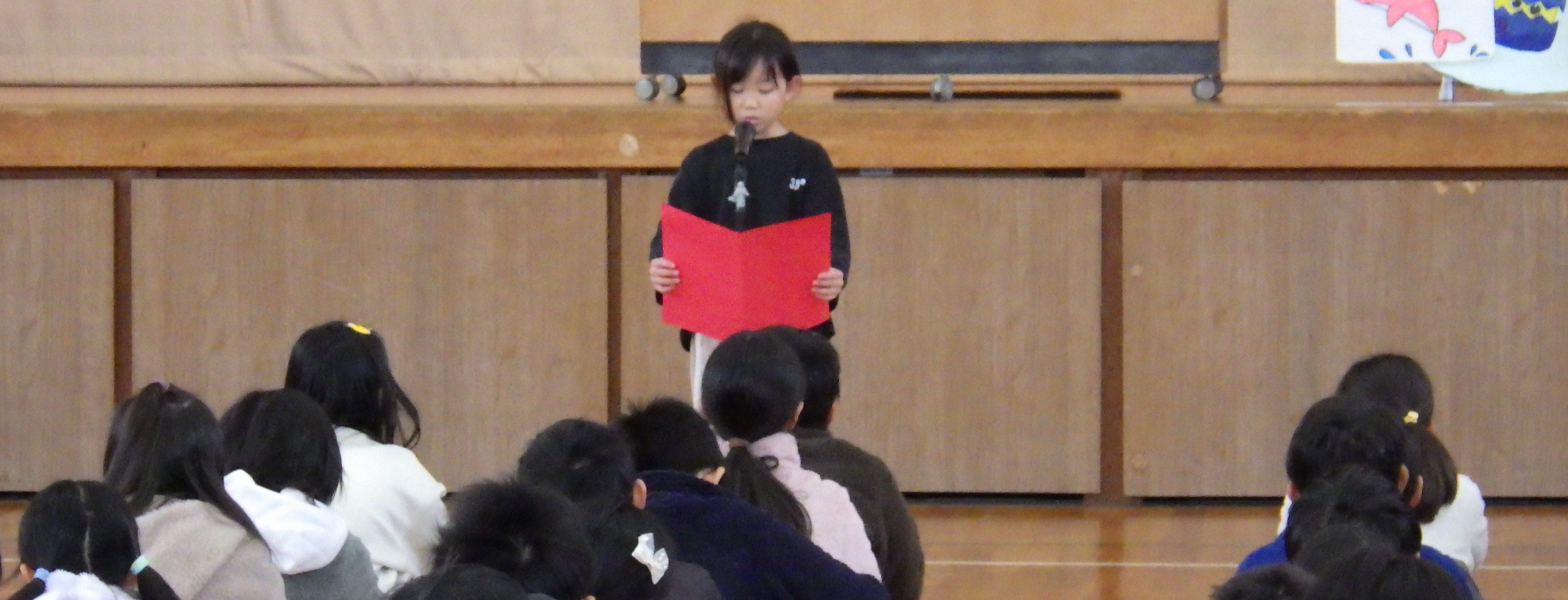 また、児童代表による2学期の思い出の発表では、なかよし遠足や運動会で高学年の子に優しくしてもらったことを話してくれました。