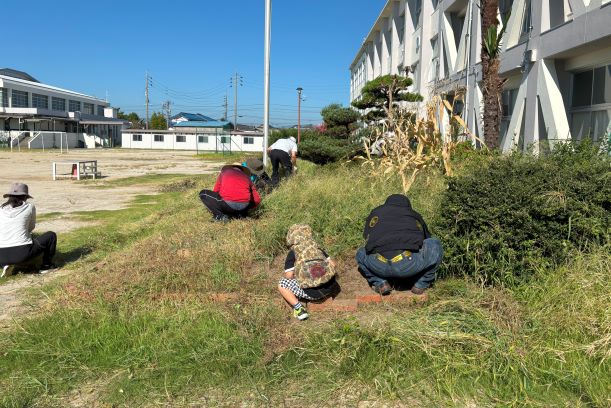 雑草だらけだった校庭や花壇、畑が1~2時間できれいになりました。