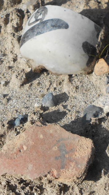 子どもたちは、歴史解説を聞くことだけにとどまらず、落ち葉や古い器を拾ったり、化石や石をじっくりと眺めたりして、学区の良さを体感していました。