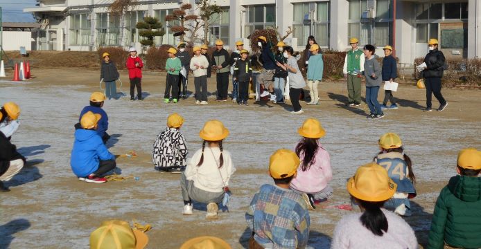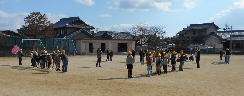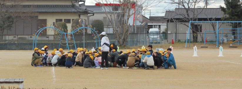 子どもたちは、少し驚いた声は出してしまいましたが、落ち着いて自分の身を守る行動をとり、運動場まで避難することができました。