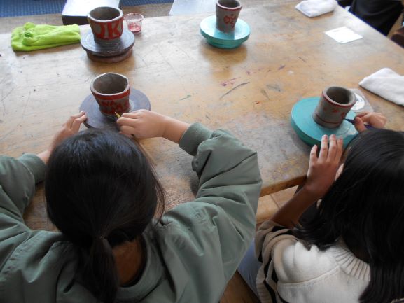 自分の作品や他校の子どもたちの作品を見て、とても楽しんでいました。