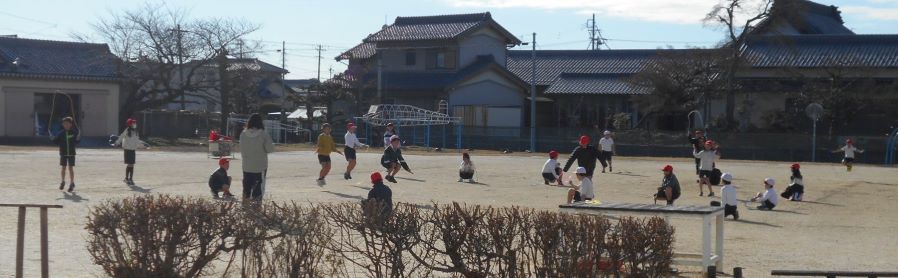 2時間目の休み時間になると、子どもたちは運動場に出てきて短なわとびを始めます。