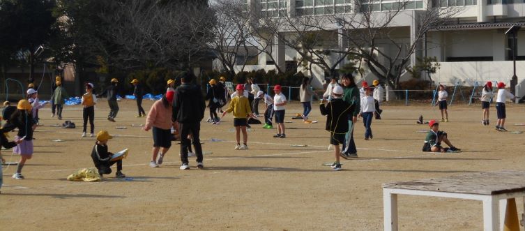 「寒いなあ」「走るのいやだなあ」といっていた子も、北風の中を元気に走り回っていました。