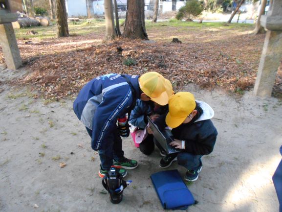 「先生、雪だよ」と教えてくれたり、雪を帽子などで捕らえたりして、つかの間の初雪を楽しんでいました。