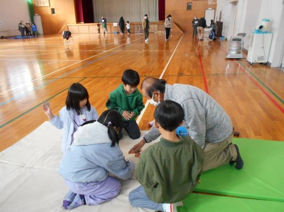 令和7年1月16日(木)に、ねんりんクラブの皆さんをお招きし、1年生が昔の遊びを体験しました。