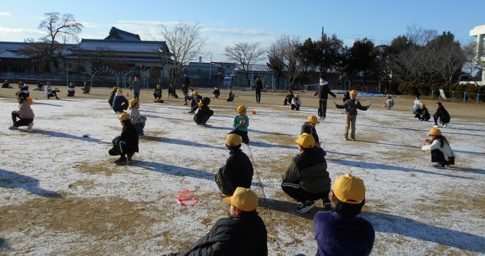 令和7年1月9日(木)から1月16日(木)まで、なわとび週間として全校で短なわとびをしています。