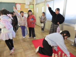 | 1月14日、16日、21日、23日の4日間、地域学校協働活動として、稲沢市の元体育科教師である前橋利典先生をお招きし、「小がたハードル走」の出前授業をしていただきました。子どもたちにとっては、初めてのハードル走でしたが、ポイントを教えてもらいながら楽しく走ることができました。 |
