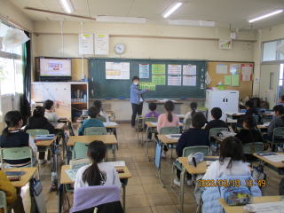 | 総合的な学習の時間に、外部から講師を招き、SDGsについての講話をしていただきました。子どもたちは真剣に話を聞き、これまで学んできたことと結び付けながら、これから自分にできることについてたくさんの意見を述べることができました。また、気になったことや分かったことなどを机上に用意していた模造紙にたくさん書き出すなど、とても意欲的に取り組む姿が見られました。今後も、SDGsの視点を大切にしながら日々の生活を送ってほしいと思います。 |