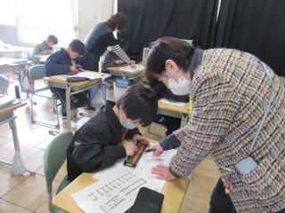 算数科の学習で「そろばん」を学習しました。稲沢珠算教室の方に来ていただき、そろばんを使った計算方法を教えていただきました。そろばんを見たことがない児童も多くいましたが、たし算・ひき算の仕方を理解し、そろばんを使って計算ができるようになりました。 |