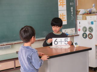 | 「できるようになったよ きらり☆1年生」と題して、学習発表会を行いました。漢字クイズに挑戦する子、制限時間内で計算カードに取り組む子、アサガオの育て方を発表する子、昔遊びを披露する子、縄跳びや跳び箱に挑戦する子など、小学校生活でできるようになったことや、学んだことを発表しました。初めての学習発表会で緊張している様子でしたが、それだけ、どの子も真剣にがんばることができました。最後には、おうちの方に初めて校歌を聴いてもらいました。大きな声で元気な歌声を体育館いっぱいに響き渡らせることができ、素敵な発表会となりました。 |