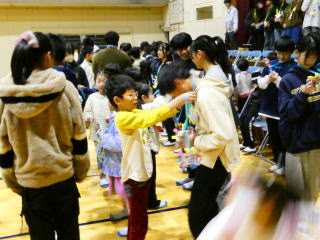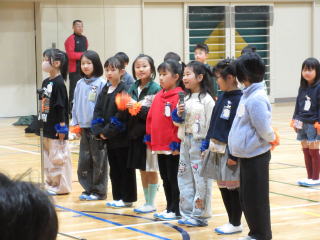 | 6年生を送る会でソーラン節とライトトーチを披露しました。ソーラン節では、大きく動くことを意識して踊ったり、掛け声で会場全体を巻き込んだりして盛り上げました。ライトトーチでは、懐中電灯で作ったライトトーチを曲に合わせて振り、見た人が感動するような演技ができました。どちらも、6年生への感謝やエールを込めて披露することができました。来年度は、自分たちが6年生になるので、最高学年としての意識を高めていってほしいと思います。 |
