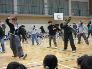 | 6年生を送る会で、“カリスマ”な6年生を想って、カリスマックスのダンスを踊りました。お礼の言葉もダンスも、6年生や他の学年に楽しんでもらうことを意識して練習し、本番では大きくかっこよく披露することができました。「緊張したけど楽しかった」という子や、他の学年の子に「とてもかっこよかったよ」と言われて喜んでいる子など、2年生の子どもたちは達成感に満ちあふれていました。他の学年の出し物を見て、感動している様子も見られ、とても素敵な会となりました。 |
