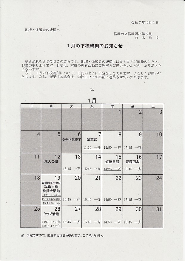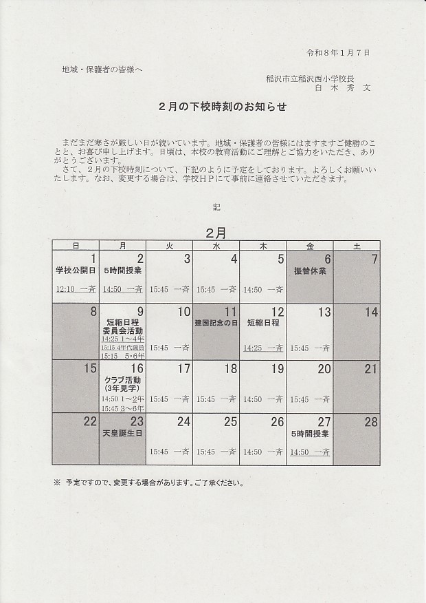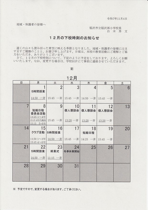 下校時刻のお知らせ
