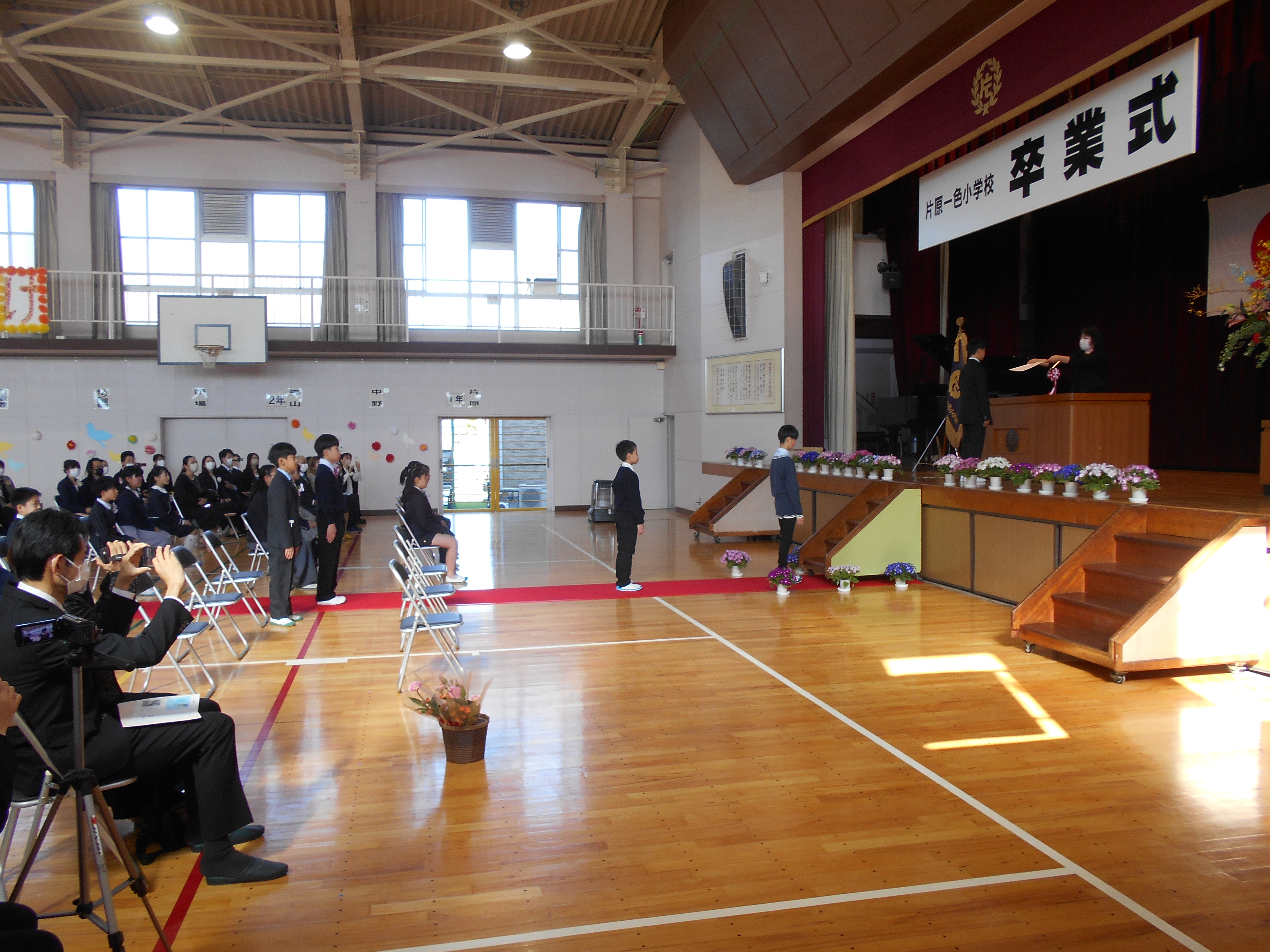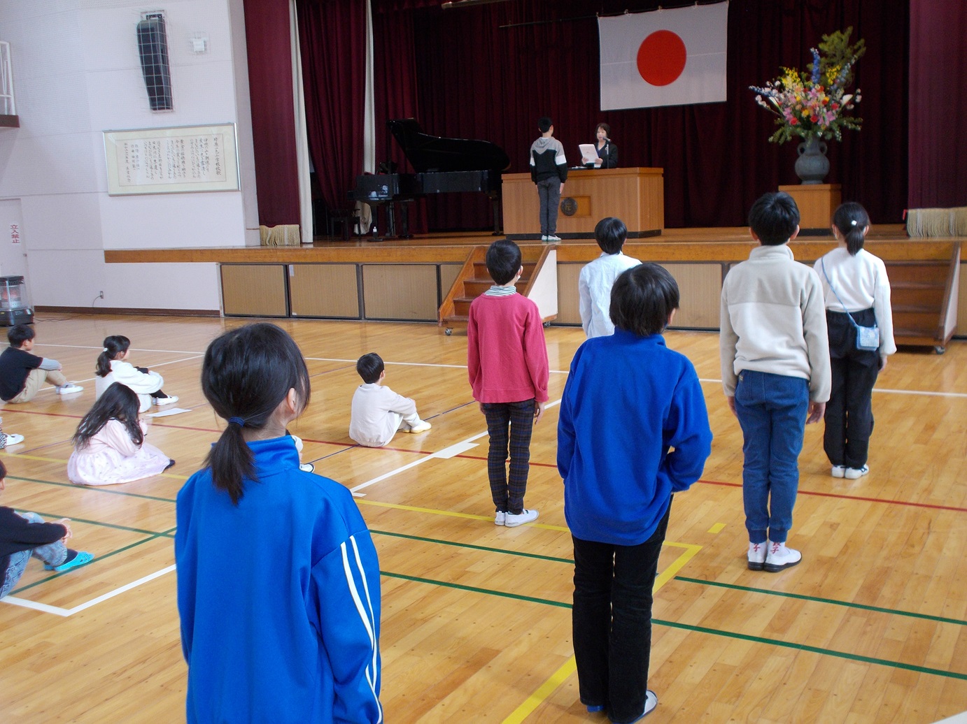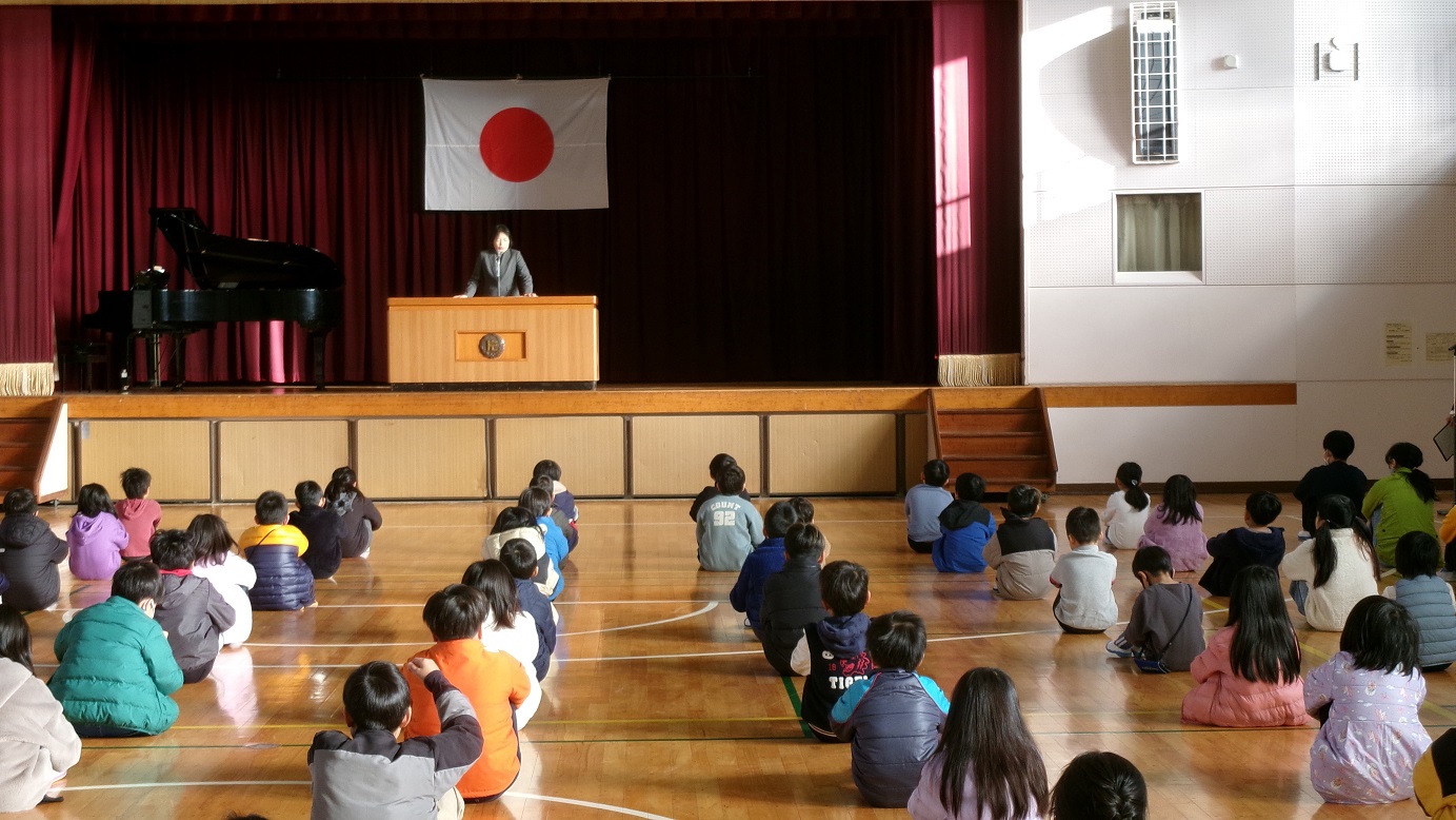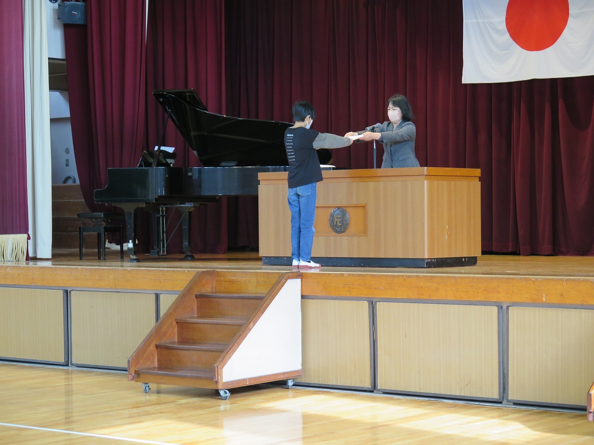 3月24日(火)に、1~5年生の修了式が行われました。修了証書の授与では、各学年の代表者は名前を呼ばれた時、はきはきとした声で返事ができました。また、校歌斉唱では体育館の中に大きな声が響き渡りました。