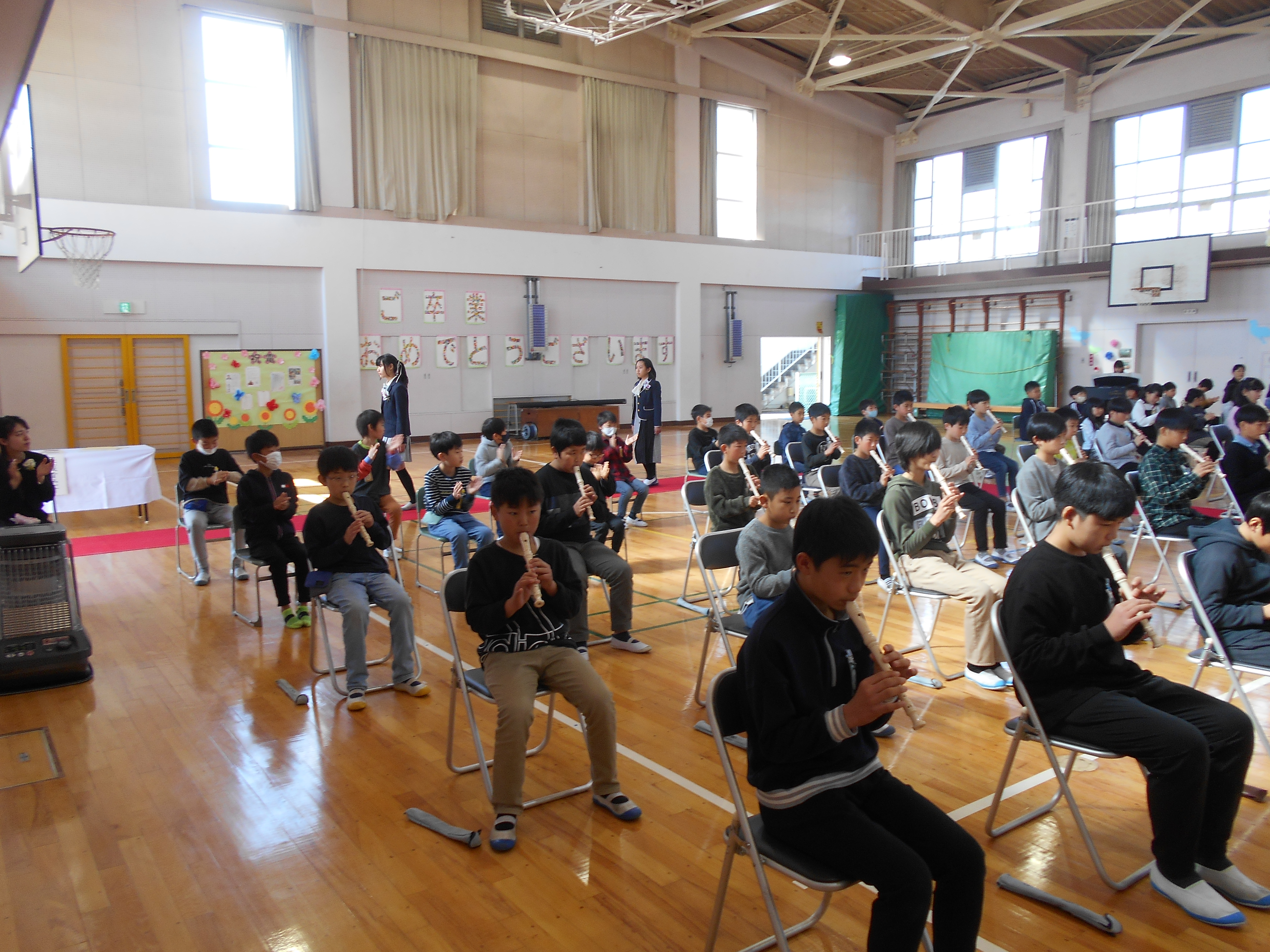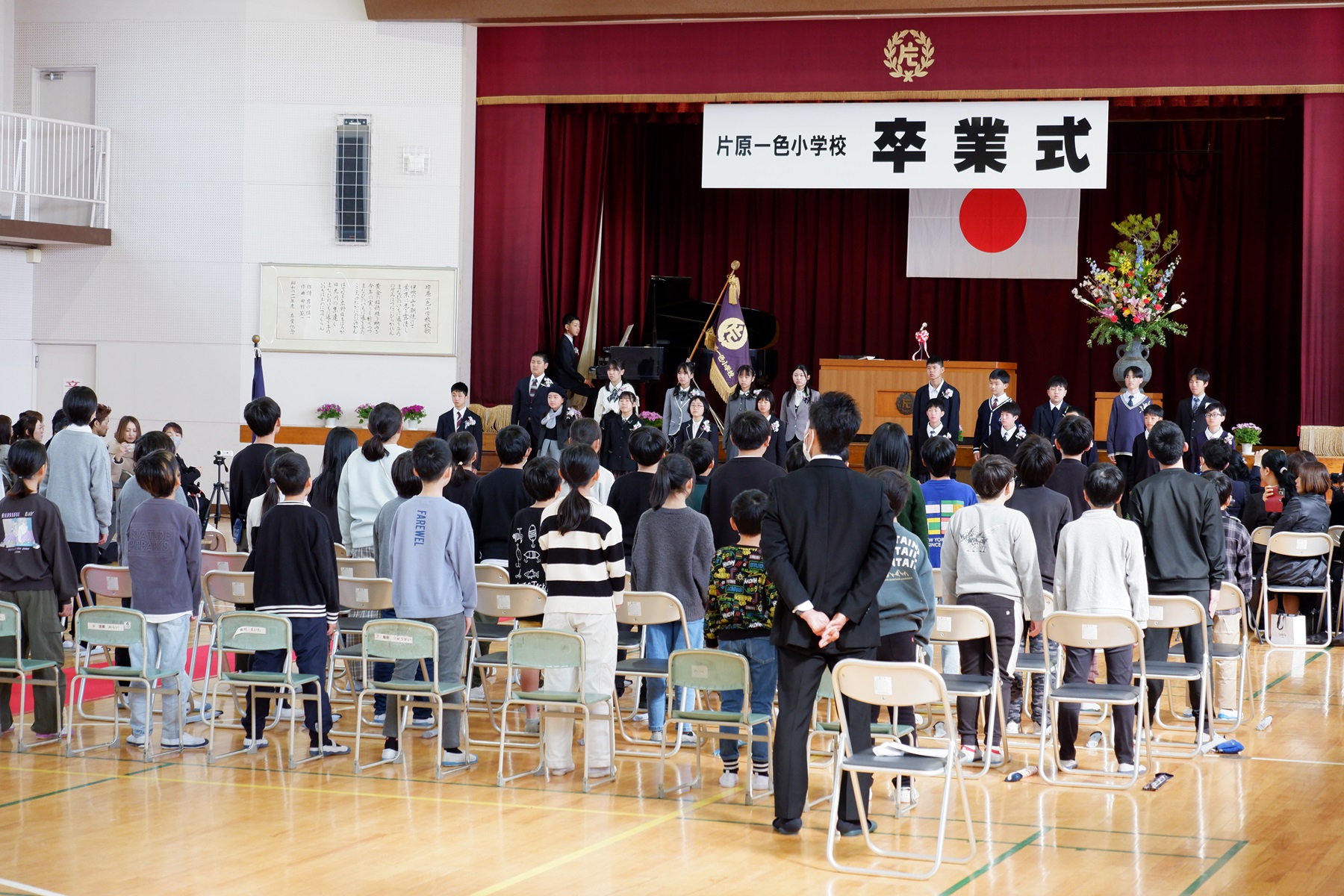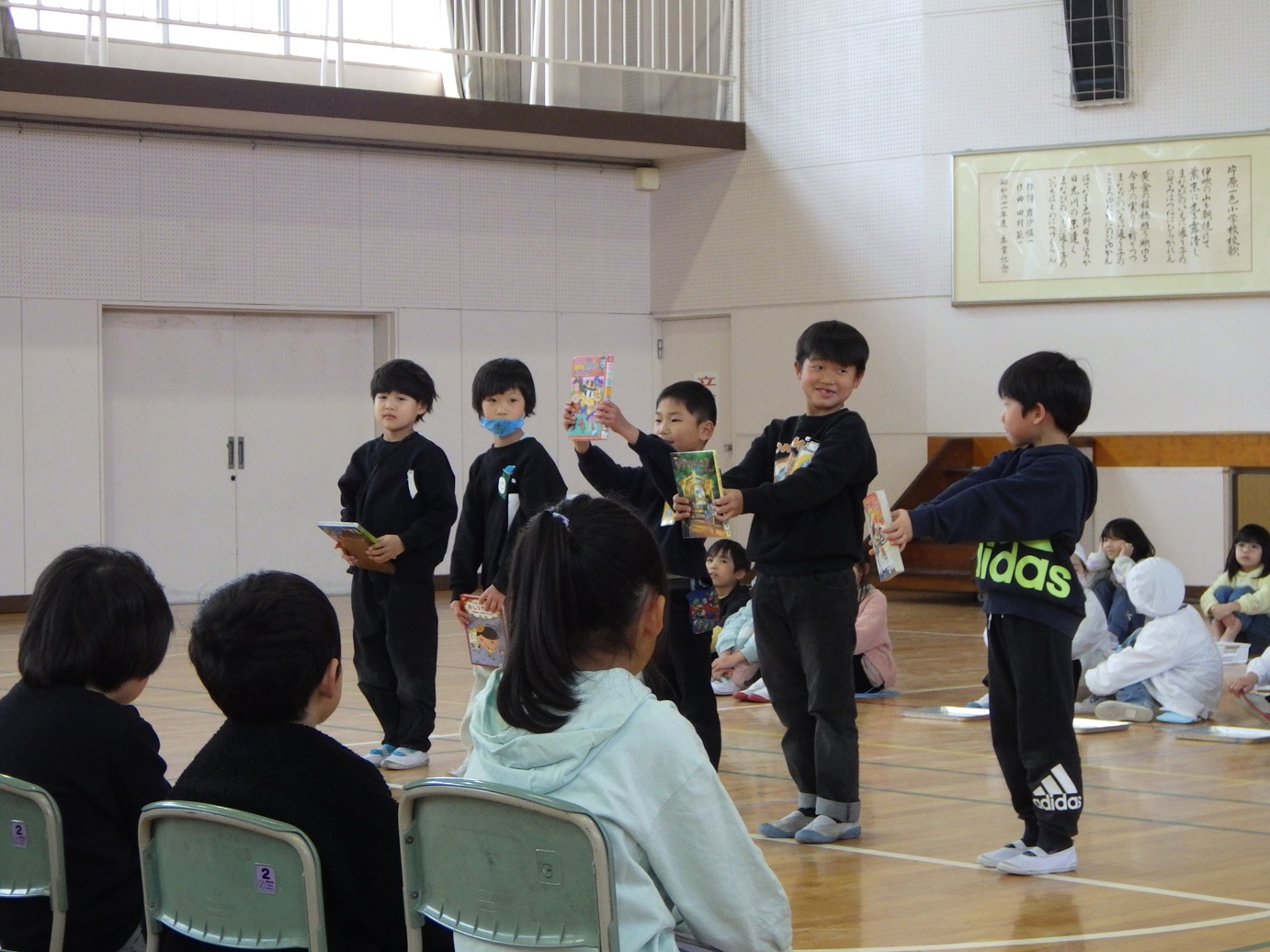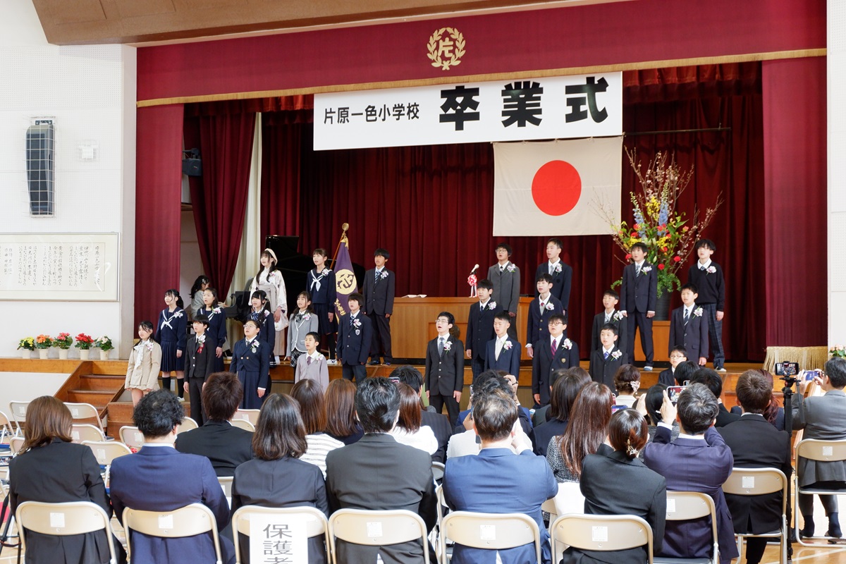 3月24日(火)に、1~5年生の修了式が行われました。修了証書の授与では、各学年の代表者は名前を呼ばれた時、はきはきとした声で返事ができました。また、校歌斉唱では体育館の中に大きな声が響き渡りました。
