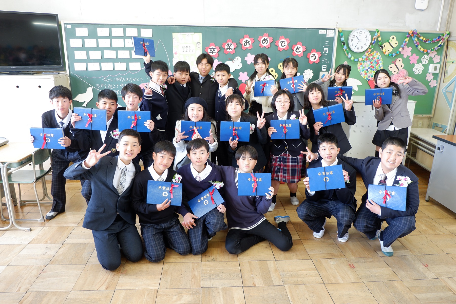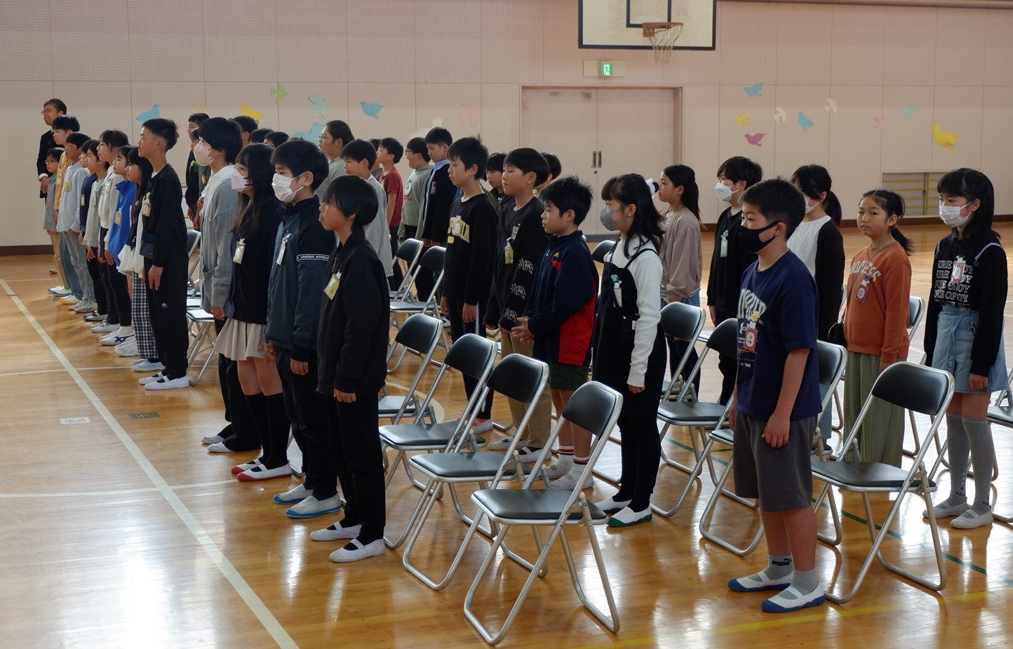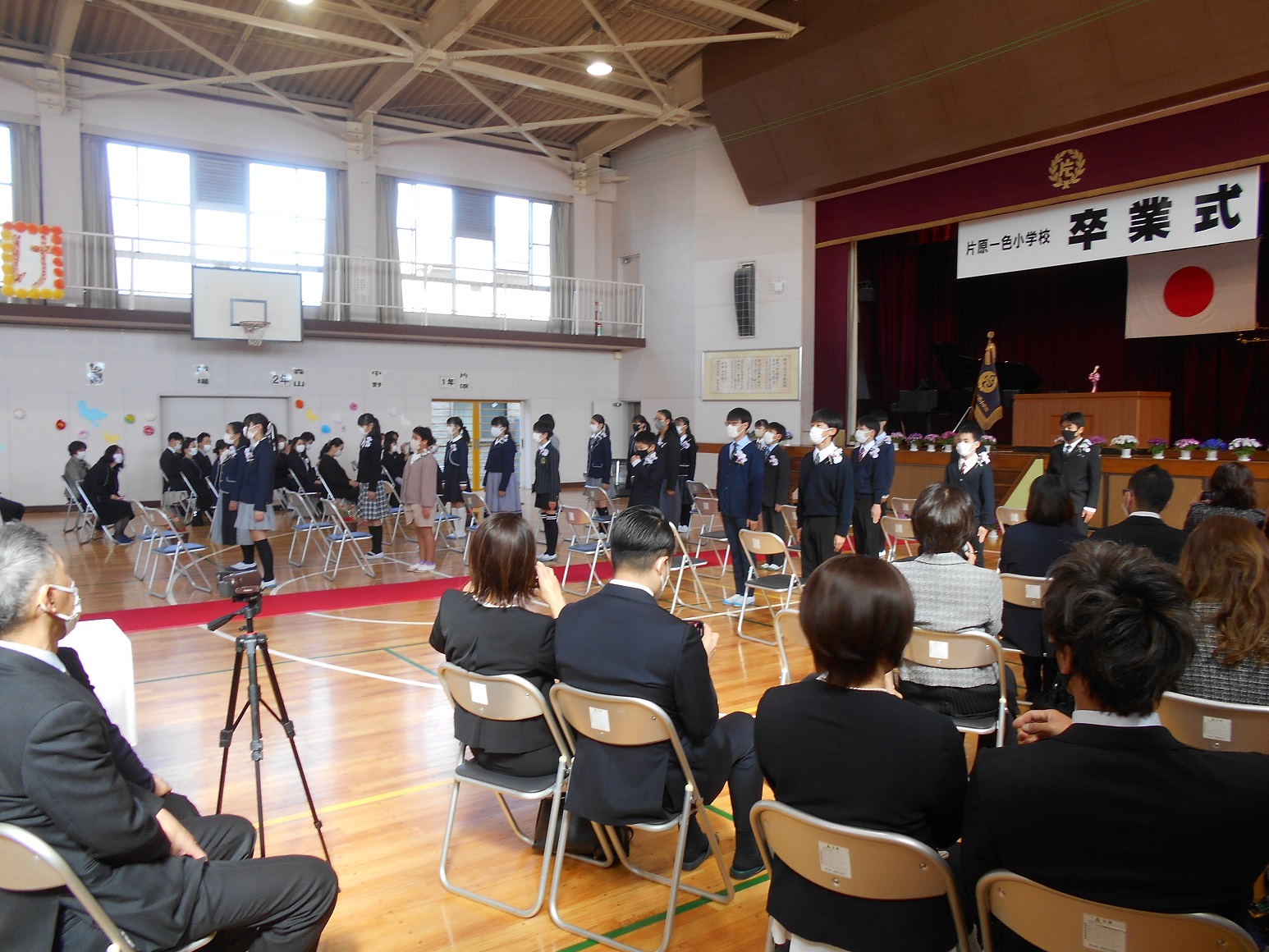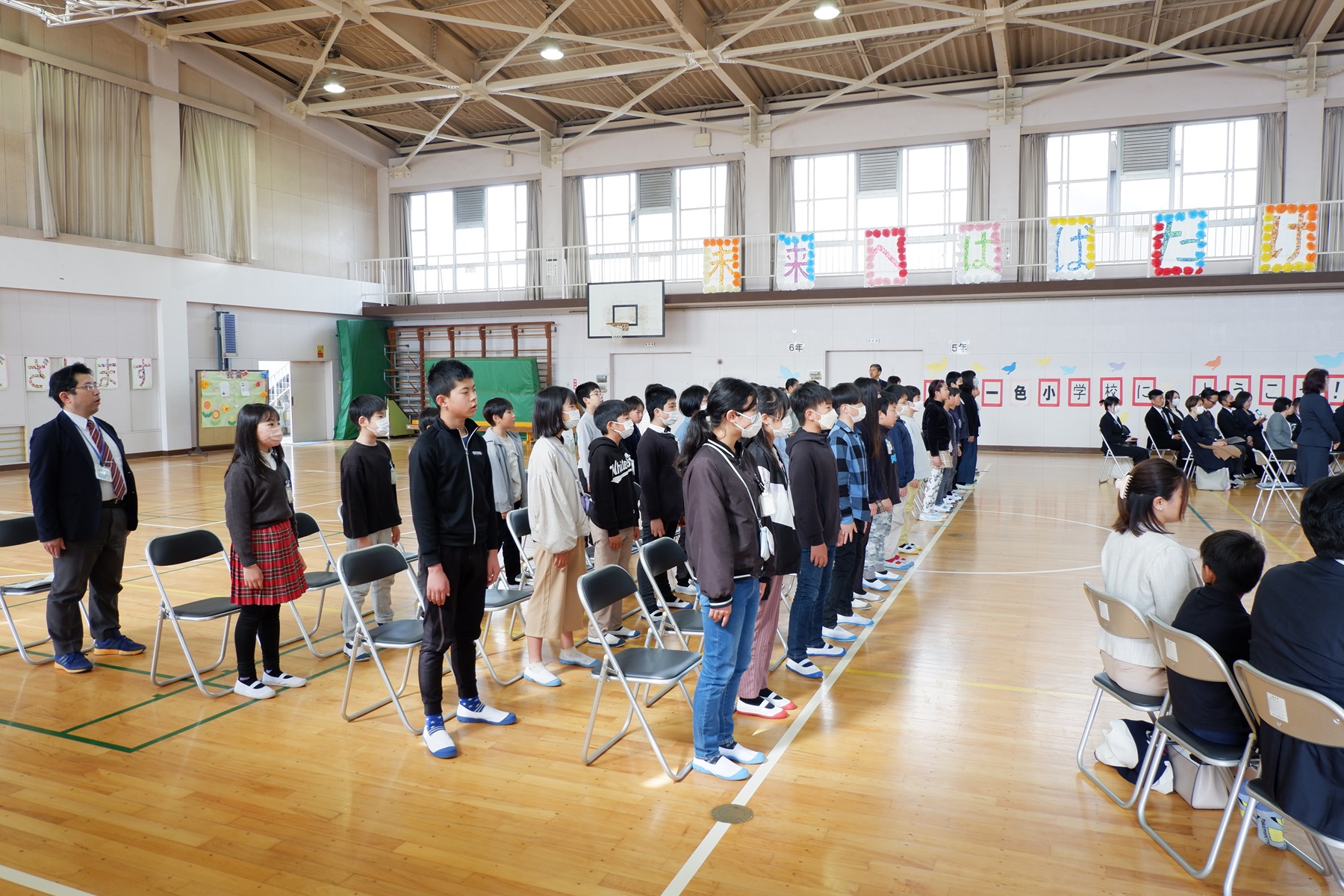 3月24日(火)に、1~5年生の修了式が行われました。修了証書の授与では、各学年の代表者は名前を呼ばれた時、はきはきとした声で返事ができました。また、校歌斉唱では体育館の中に大きな声が響き渡りました。