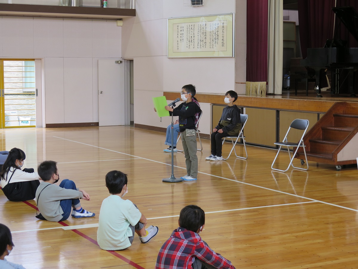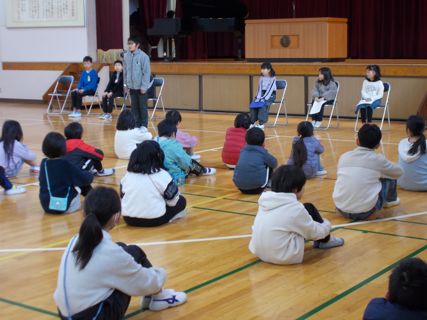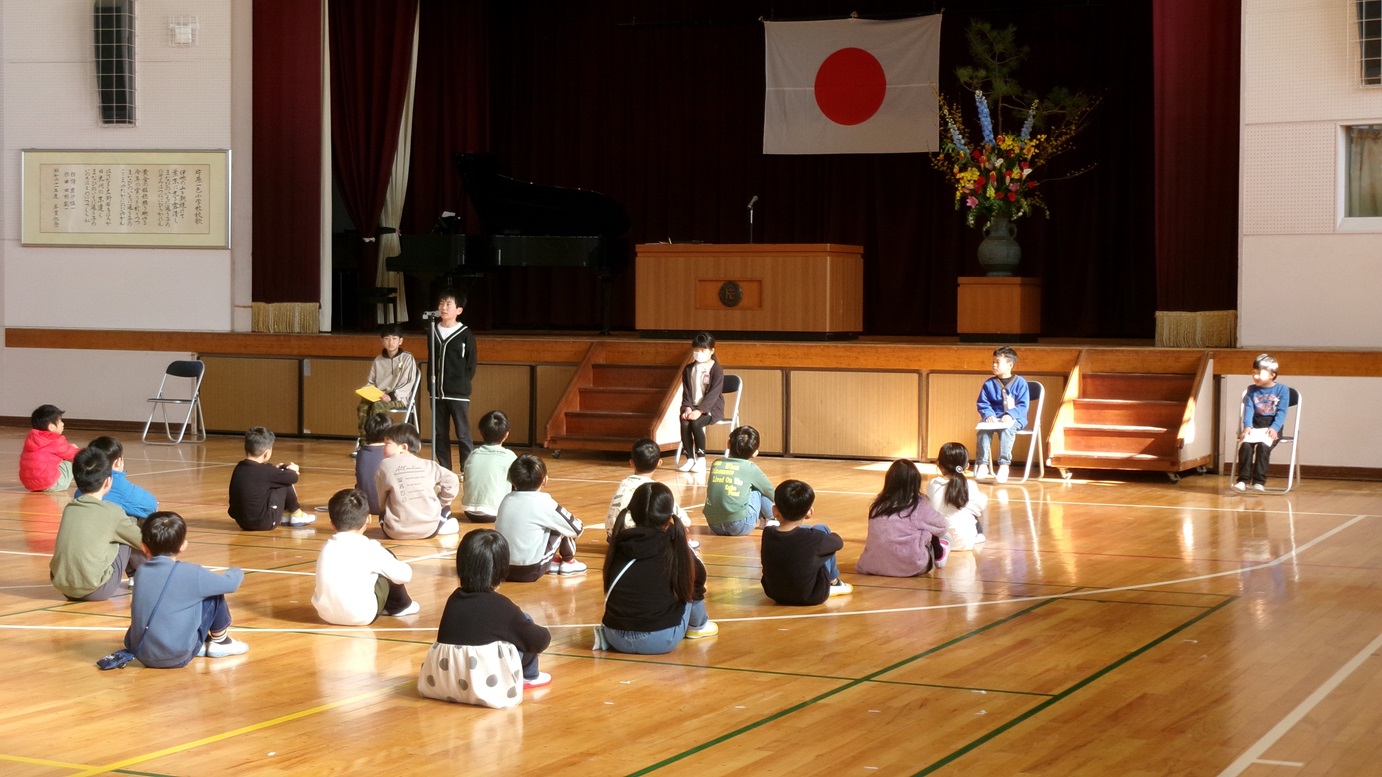 修了式後に各学年の代表者の「3学期に頑張ったことと、来年度頑張りたいこと」の発表もありました。代表者は自分のことばで令和7年度の振り返りと令和8年度の抱負を話してくれました。