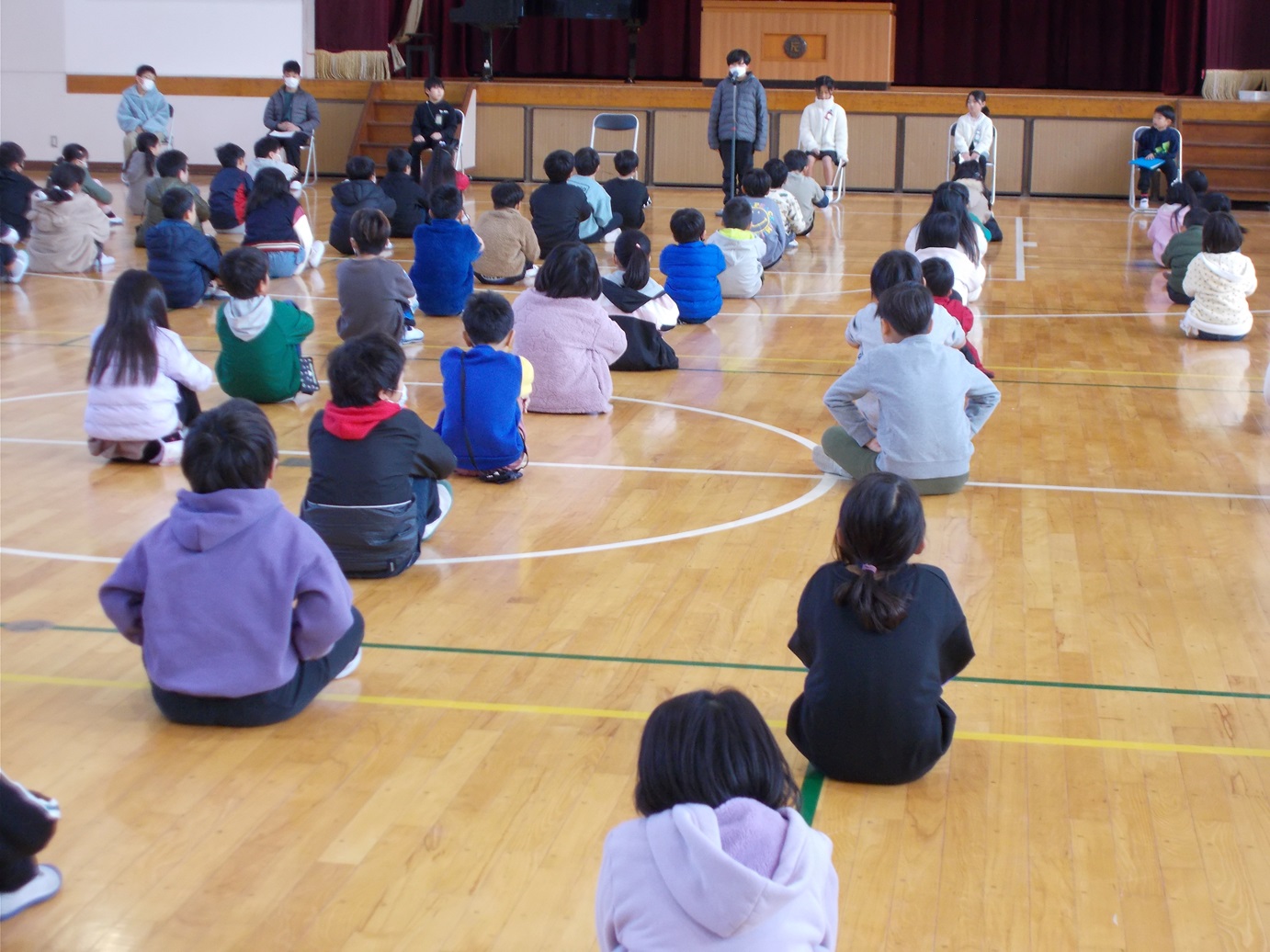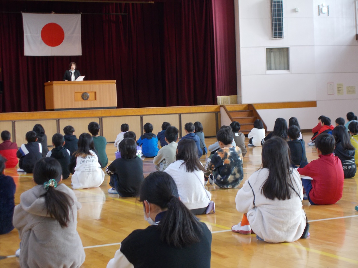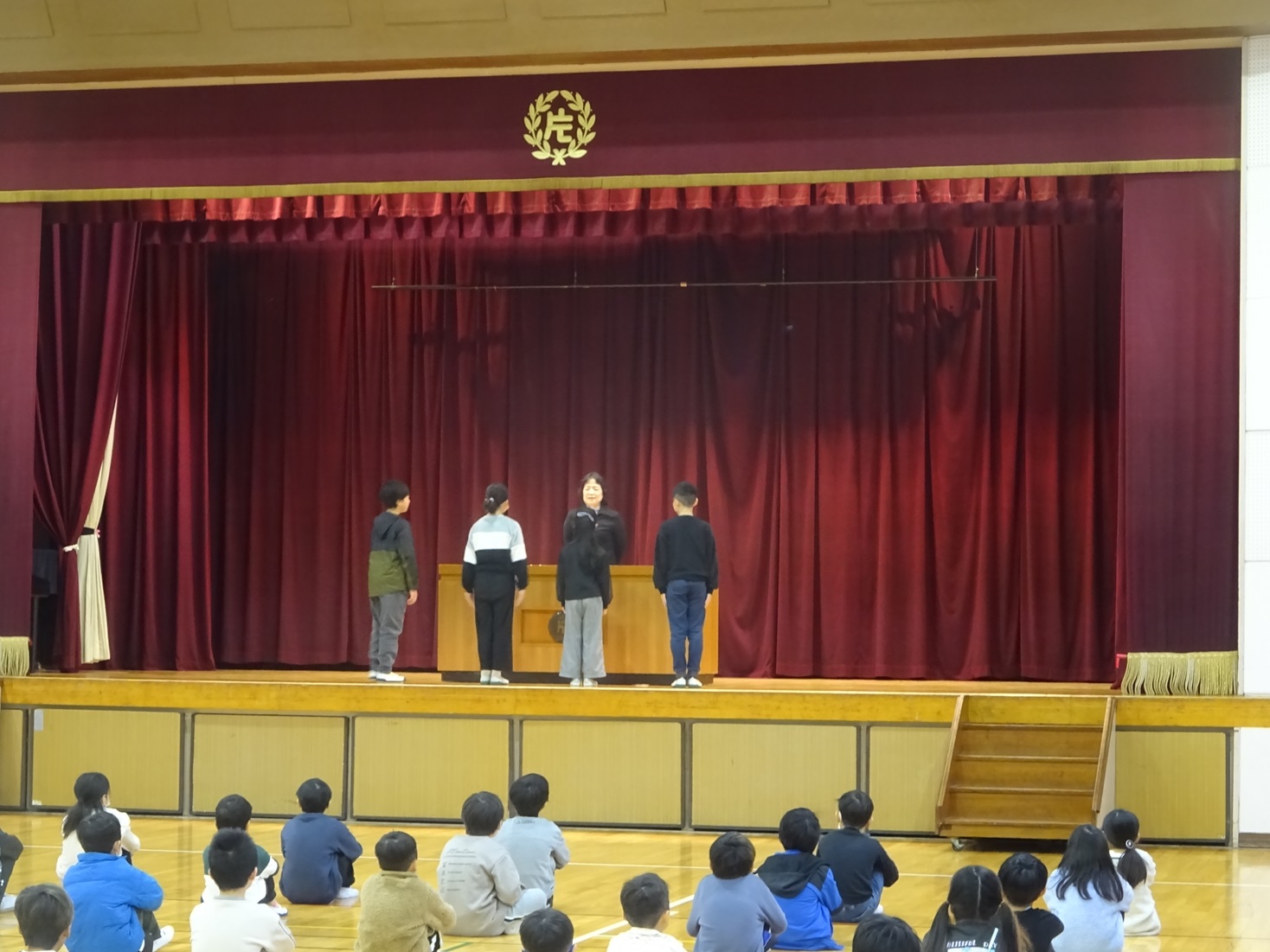 修了式後に各学年の代表者の「3学期に頑張ったことと、来年度頑張りたいこと」の発表もありました。代表者は自分のことばで令和7年度の振り返りと令和8年度の抱負を話してくれました。