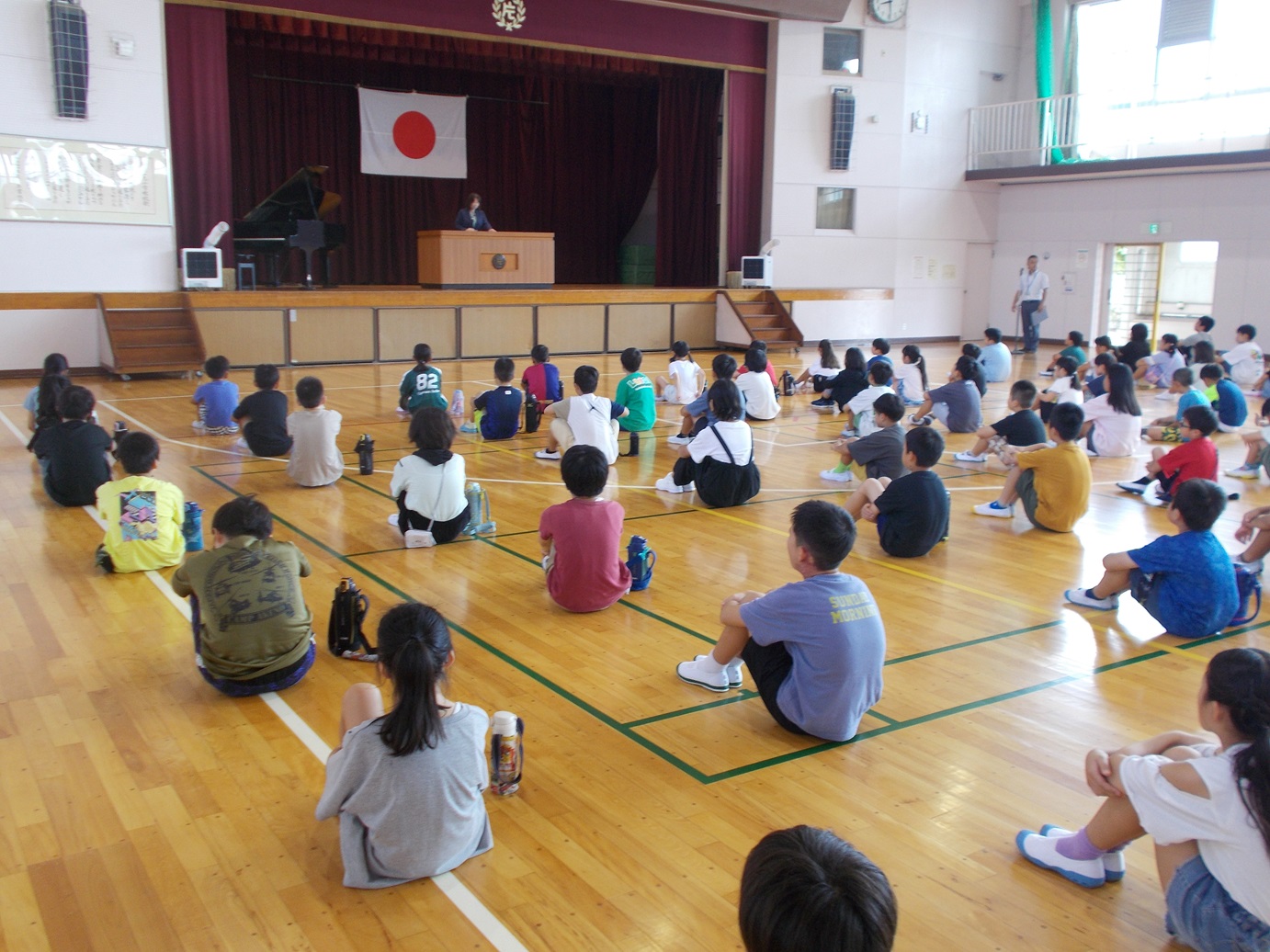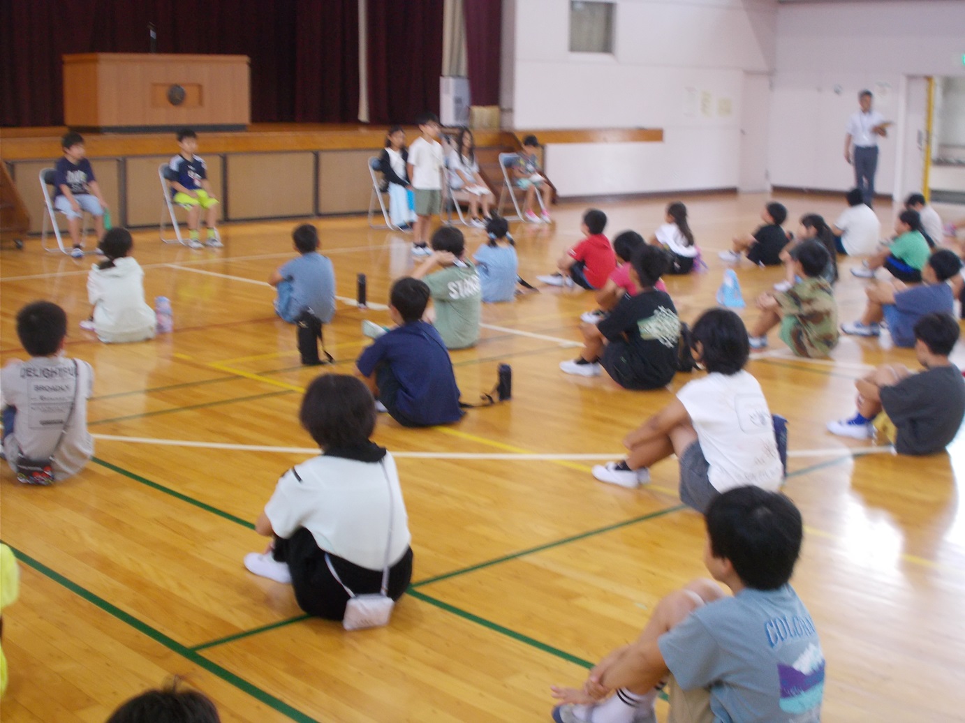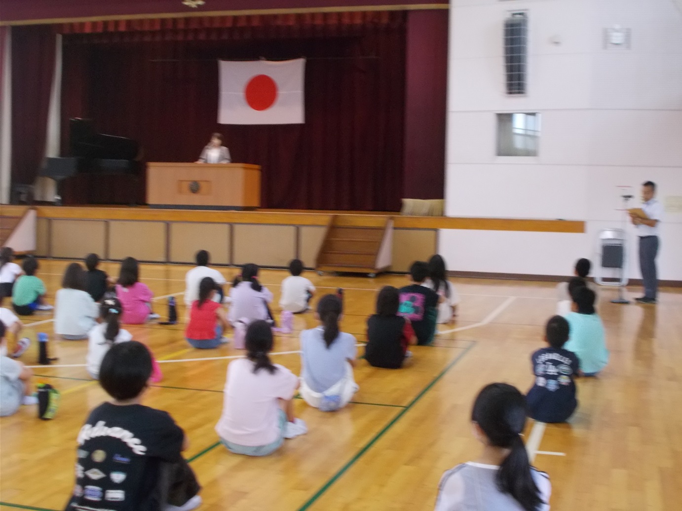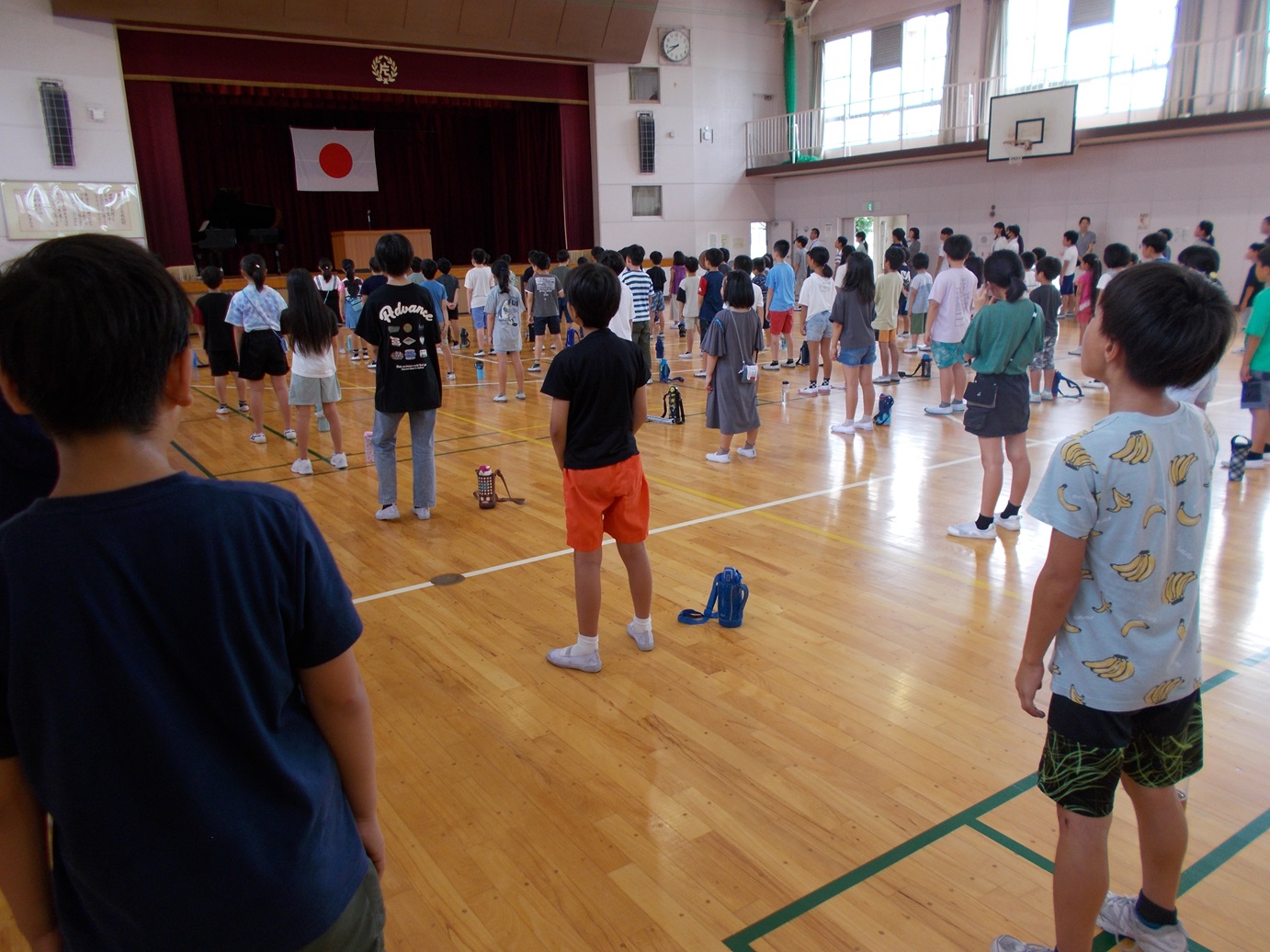 7/18(金)には、1学期の終業式がありました。式が始まる前に教務主任の先生から、5年生のあいさつと6年生の靴の整頓の仕方が素晴らしいというお話がありました。校長先生からは、1学期の学校生活を振り返って頑張ったことについて、お話がありました。1学期の間に、たくさんの成長した姿を見せてくれました。終業式後、生活指導担当の先生からは、夏休みの生活などについてのお話がありました。安心・安全、そして有意義な夏休みを送ってほしいと思います。また、各学年の代表による「1学期の振り返りと夏休み や2学期に頑張りたいこと」の発表も、大変堂々とした態度でできました。