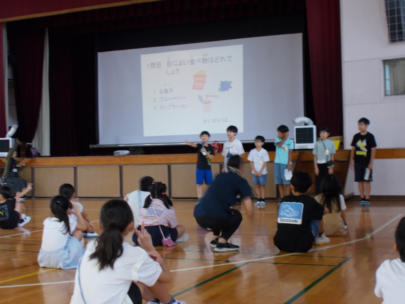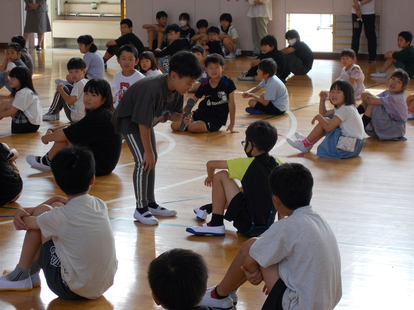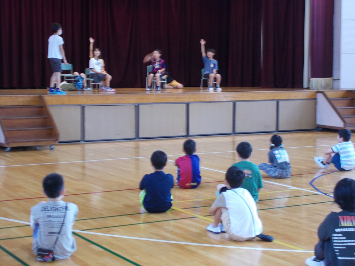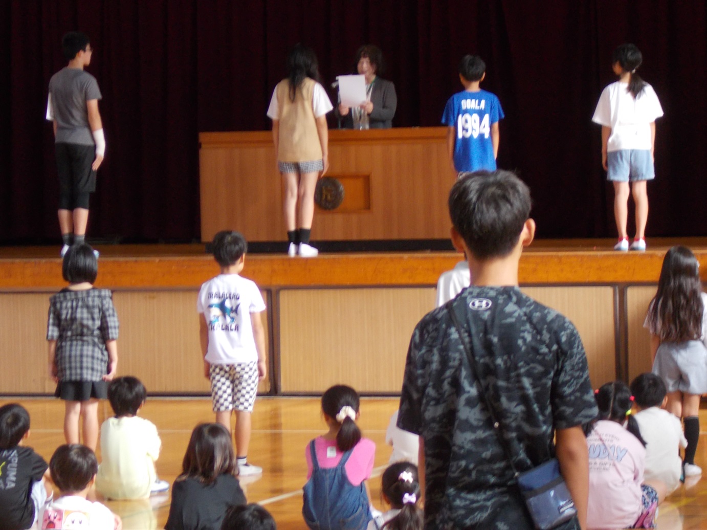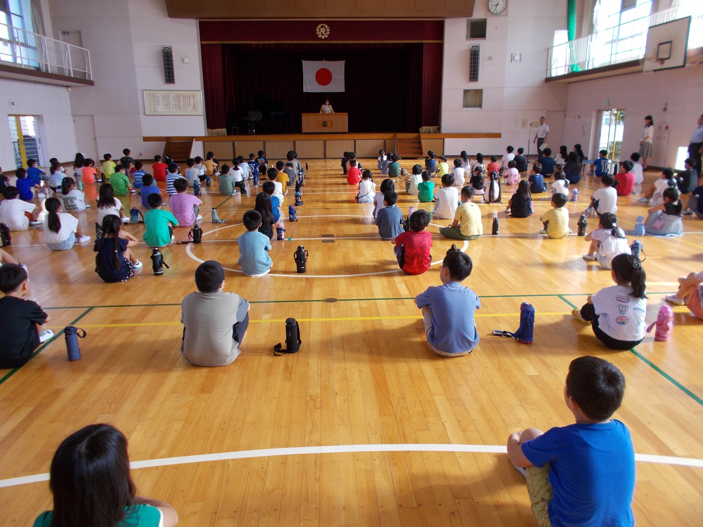 7/18(金)には、1学期の終業式がありました。式が始まる前に教務主任の先生から、5年生のあいさつと6年生の靴の整頓の仕方が素晴らしいというお話がありました。校長先生からは、1学期の学校生活を振り返って頑張ったことについて、お話がありました。1学期の間に、たくさんの成長した姿を見せてくれました。終業式後、生活指導担当の先生からは、夏休みの生活などについてのお話がありました。安心・安全、そして有意義な夏休みを送ってほしいと思います。また、各学年の代表による「1学期の振り返りと夏休み や2学期に頑張りたいこと」の発表も、大変堂々とした態度でできました。