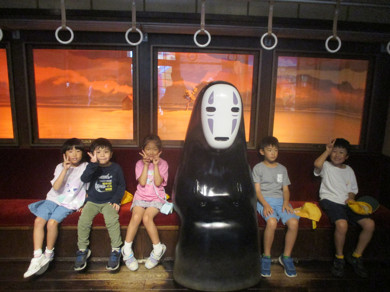 春の校外学習でジブリパークへ行きました。『仲間との仲を深める』『ルールやマナーを守る』という2つの目標のもと、級友や同じ学年の仲間と話しながら、ジブリパークを見学することができました。ジブリの大倉庫では、「カオナシ」と写真を撮ったり、「借りぐらしのアリエッティ」の世界を楽しんだりしました。最高の思い出をつくることができました。 |