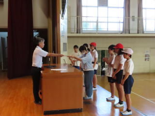 |  運動会の全校練習が始まりました。児童会役員を中心に、声や動きを揃えて目標宣言を述べたり、入退場の流れを確認したりしました。体育科の授業では、それぞれの競技の練習も行っています。楽しみにしている児童も多い運動会が、成長の場や学校生活の思い出になるよう、力を合わせて頑張ってほしいです。 |