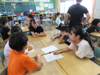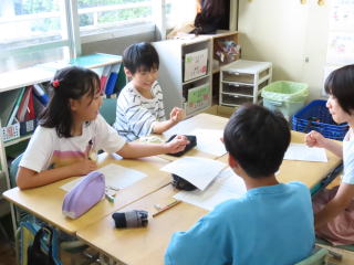 |  グループアプローチを行いました。内容はアドジャンで、即興で決まったお題についてみんなで楽しく話合いました。また、今回は、先生が担任以外のクラスを訪れたため、児童同士だけでなく、あまり関わったことのない先生とも交流する機会となりました。子どもたちは、自分のことを話したり友達の考えを聞いたりすることで自然と顔がほころび、笑顔になっていく様子が見られました。 【〜児童の感想〜】 ・ しっかりと友達の方を見て、嬉しかったことを聞けた! ・ 大人になったら何になりたいかを話し合えた! ・ みんなの感想をいっぱい聞けた! ・ 友達にたくさん質問できて嬉しかった!  |