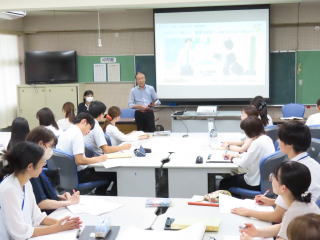 |  1学期に続き、岐阜聖徳学園大学より山田貞二先生をお招きし、道徳科についての研究会を行いました。 はじめに、山田先生によるゲストティーチャーを活用したモデル授業を見せていただき、見識を深めました。その後は、「正直」をテーマに研究授業を行い、よりよい道徳科授業の在り方について話し合いました。ゲストティーチャーの実体験による、リアルな声を授業に取り入れることで、子どもたちがよりよい生き方について考えるきっかけとなることを、改めて学びました。 地域のみなさんも、機会があればぜひ、貴重な体験や思いを子どもたちに聞かせてやってください!  |