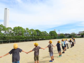 |  3年生が国語科の教材「ちいちゃんのかげおくり」についての理解を深めるため、校庭に出て「かげおくり」という遊びを体験しました。 「自分の影が空に映った!」「次はこのポーズの影をつくろう!」などと話をしながら、楽しそうに自分たちの影の残像を空に浮かべていました。物語の登場人物と同じ体験をすることで、心情をより深く考えるきっかけとしていきたいです。  |