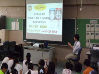|  6年生児童を対象に、警察の方による薬物乱用防止教室を行いました。映像や模型などを見ながら、薬物を使用するとどうなるか、その危険性について真剣に学ぶことができました。 【〜児童の感想〜】 ・ 薬物は絶対にやってはいけないと思った。 ・ 薬物で脳の細胞が壊れたら、二度と戻らないことが分かった。 ・ 薬物は、スピードやチョコなど、名前を変えて呼ばれていることを初めて知った。 ・ 薬物は中毒性があるので、やめられなくなったり死んでしまったりすることが怖いと思った。 ・ 誘われても、きっぱりと断ろうと思った。  |