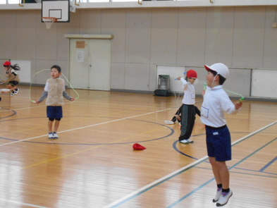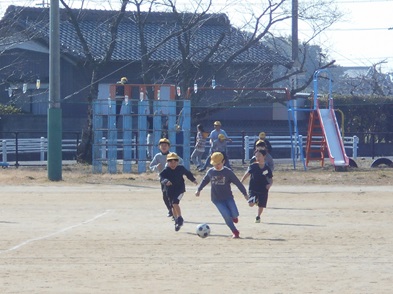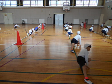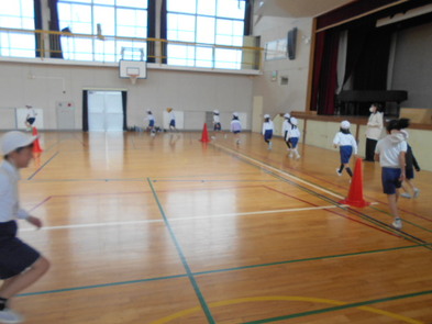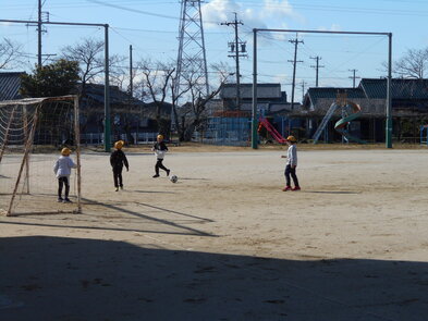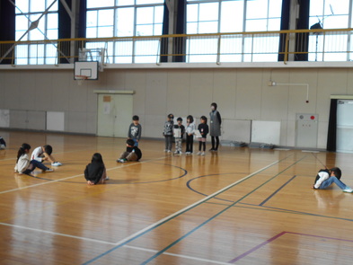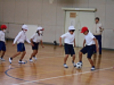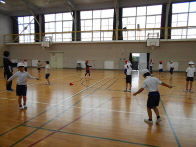 R6.2.1木【3年:体育】サッカー 運動場が少し緩んでいるため、体育館でサーカーボールを使って運動をしました。 |