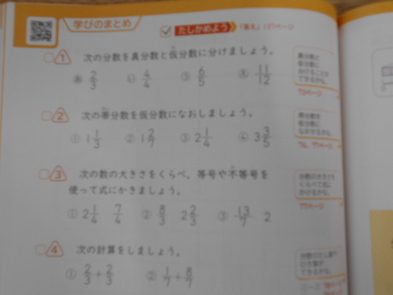 R6.2.1木【4年:2限 算数】 分数の学習も自分がどれだけ分かっているか、試せる場面でした。ちょっと復習が必要だなと思ったら、機会を逃さずやりましょう。まずは、どんな問題が得意で苦手か、意識できるといいですね。 |