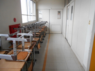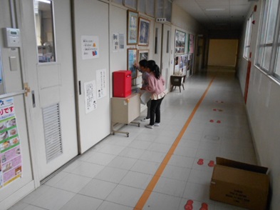 R6.2.5月【音楽室前】 6限の委員会を控え、廊下には机・椅子が並べてありました。委員会活動で油引きをしてくれます。 |