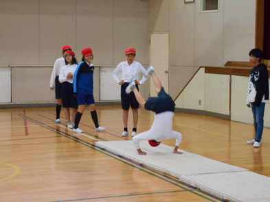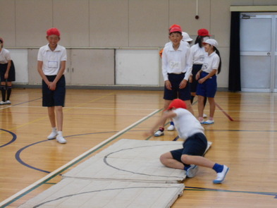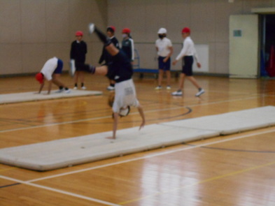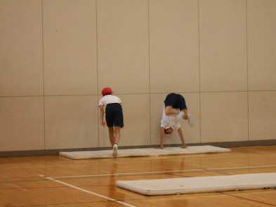 R6.2.5月【6年:5限 体育】器械体操 倒立前転や側転の練習をしました。側転が上手な子もいました。倒立からあごを引き、背を丸めながら腕をたたむ一連の動作が難しいようです。上手な人の動きを参考にして、うまくできるようになるといいですね。ICTが使えると思います。 |