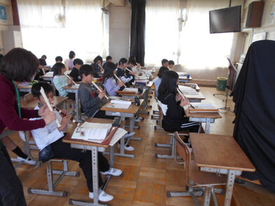 R6.2.7水【1年:4限 音楽】合唱 「森のくまさん」を追いかけっこして歌う輪唱にチャレンジしました。掛け合って歌うことができて、とても楽しそうでした。 |