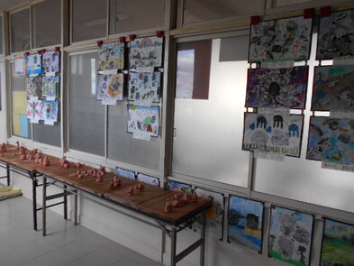 R6.2.6火【3年廊下 掲示物】 臨時休業中の3年生の廊下です。版画や粘土の作品が掲示・展示してあります。3年生のみなさん、よく寝て、よく食べて登校日には、元気に来てください。 |