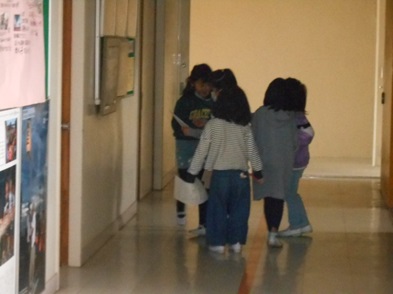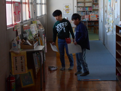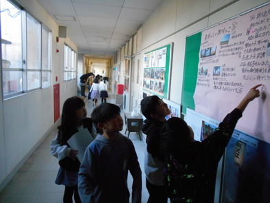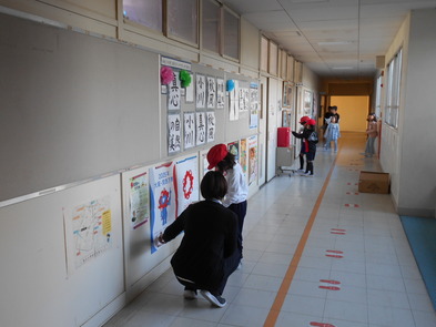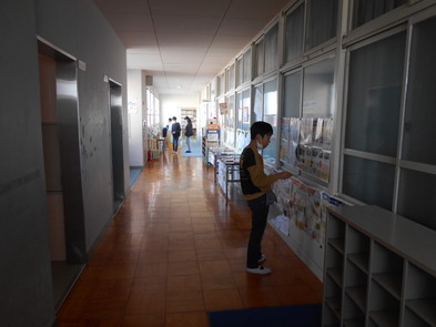 R6.2.9金【3年:朝】 3日ぶり、久しぶりの登校後、クイズをしながら掲示物を見回りました。 |