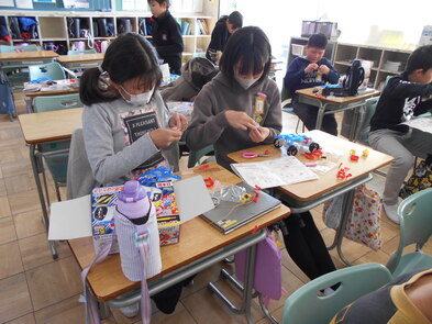 R6.2.7水【5年:4限 理科】電磁石の性質 集中した表情で取り組んでいます。 楽しくも、難しく、もがくこともある活動です。取り扱い説明書を見ながら、完成に向けて活動するのは、子どもたちにとって負荷があることです。しかし、楽しい活動に向けてがんばっていました。 |