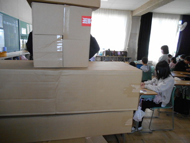 R6.2.7水【6年:4限 卒業に向けて】 卒業に向けて、いくつかのグループで様々な活動をしているようです。段ボールは何に使うのでしょう? |