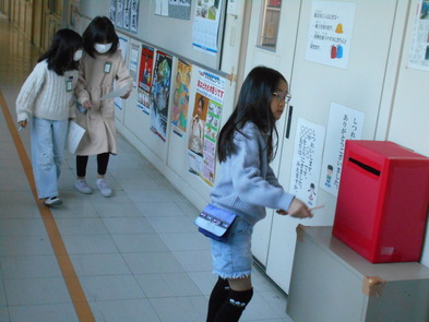 R6.2.6火【掲示物キャンペーン】 今日から2月13日(火)まで、生活広報委員会主催で掲示物キャンペーンを実施するようです。 学校に貼ってある掲示物に関心をもってもらい、興味を広げたり、他者の努力を認めたり、所属感を高めたり、クイズに他者と協働してクイズに取り組んだりして、人間関係を深めたり、達成感を得たりできることをねらいにしているようです。 2年生の女の子が、盛んに掲示物を見つめたり、職員室前に設置されたポストにクイズ解答用紙を入れたりしていました。何事にも全力で取り組む2年生のエネルギーがすごいなぁと感心しました。 |
