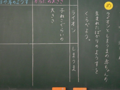 R6.2.9金【1年:4限 国語】どうぶつの赤ちゃん 説明文を丹念に読み取る学習をしました。「体の大きさ」には赤線、目や耳の様子には、教科書に青線を引きながら、学びました。注意しながら読み取る、読み進める力が育ってほしいです。 |