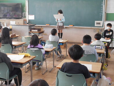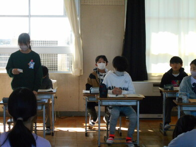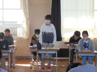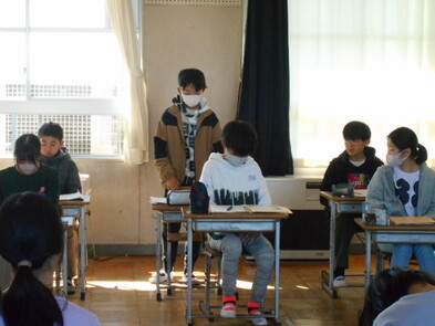 R6.2.16金【2年:5限 国語】作文発表 この一年間で心に残ったことを作文に起こし、発表しました。つなぎ言葉やまとめの言葉を使って、自分の印象に強く残った出来事を読む形で発表しました。 接続詞や理由を示す言葉を意図的に使って文をつくっていたので、聞き手が分かりやすい文章をつくり、みんなにしっかりと届く声で発表できていました。 |