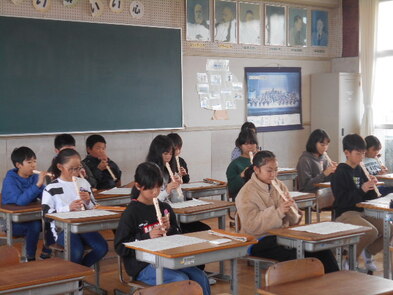 R6.2.15木【3年:3限 書写】 「光」という時を毛筆で練習しました。 |