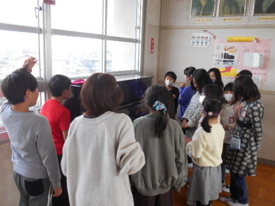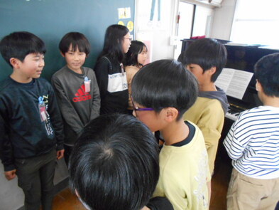 R6.2.27火【6年:1限 音楽】 ピアノの確かな音に合わせて、パートごとの歌声が聞こえてきました。今のメンバーで声を合わせて、歌を奏でる貴重な機会です。聞き合って歌い合って、心に残る歌にしてください。 |