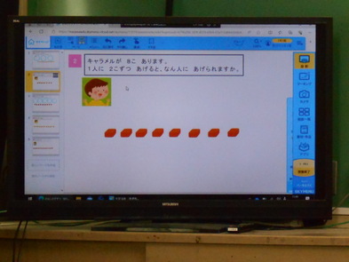 R6.2.20火【1年:4限 算数】 2個ずつ分けると・・・という概念を学びました。 |